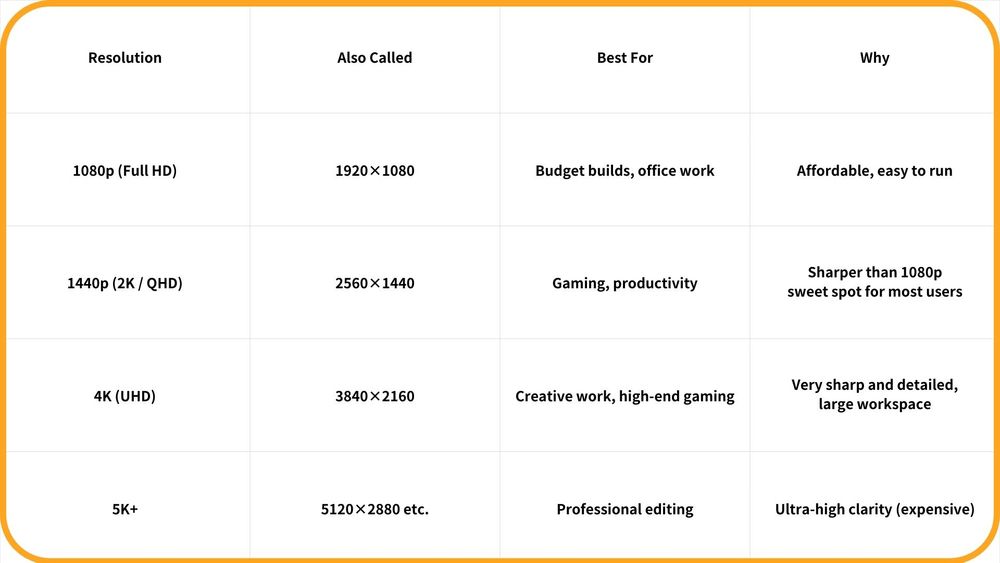 Below is a simple breakdown of the most important things to know: resolution, panel type, refresh rate, and use-case recommendations.