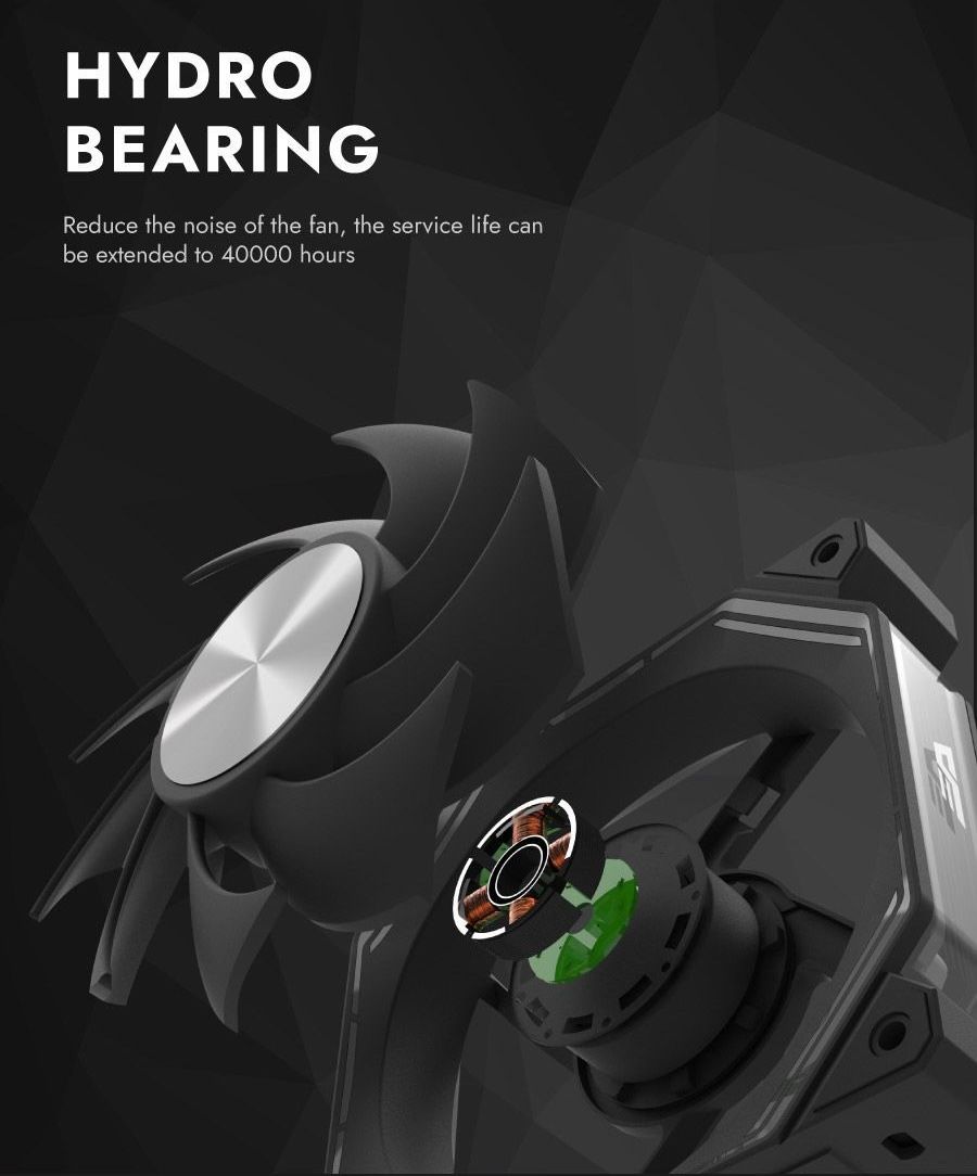 This is the category where most modern mid-to-high-end RGB fans (like many darkFlash models) belong. Hydro Bearings (and their cousins, Rifle Bearings) are essentially an advanced version of the Sleeve Bearing. They feature special grooves and a sealed design that recirculates the lubricant, preventing it from drying out.