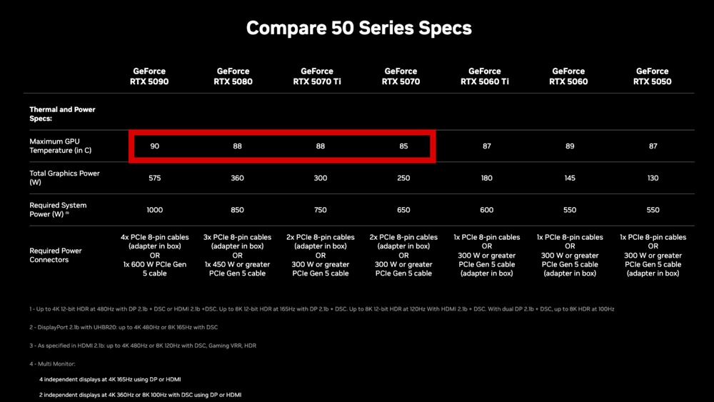 (NVIDIA GeForce RTX 50 Series Thermal and Power Specs)