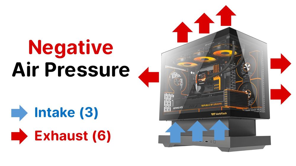 Understanding the difference between Positive and Negative air pressure is the key to keeping your components cool and, more importantly, dust-free. Let’s see how this works in practice, using the darkFlash FLOATRON F1 M-ATX PC Case as our reference case."
