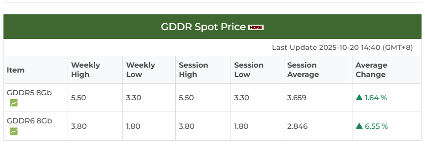 Spot and contract prices for GDDR6/GDDR7 on DRAMeXchange or TrendForce