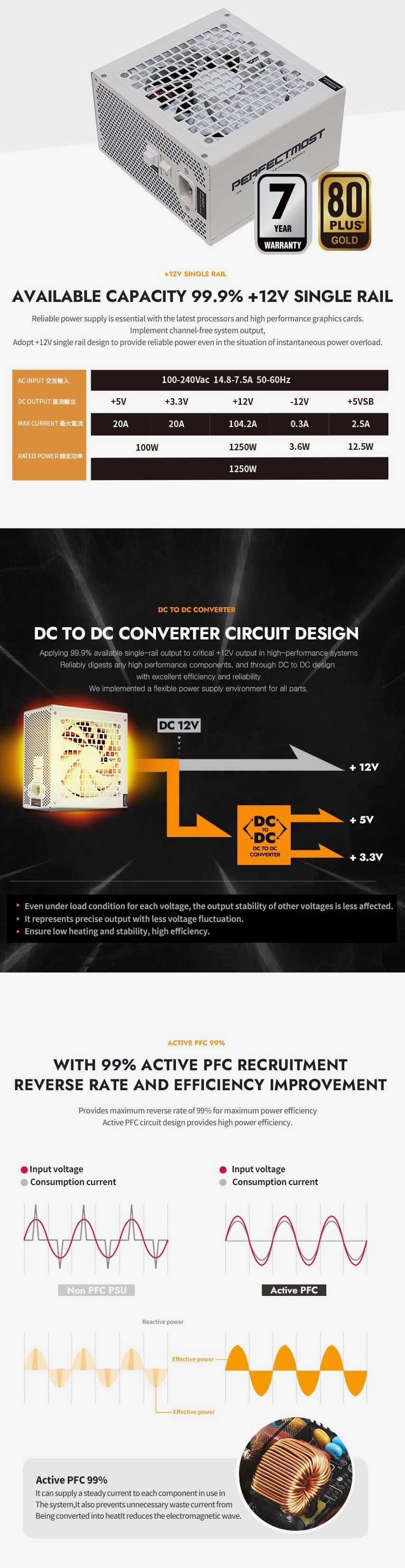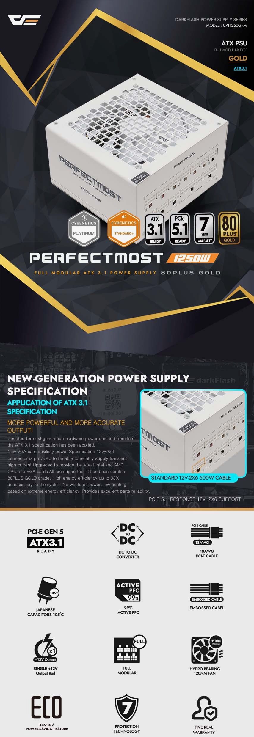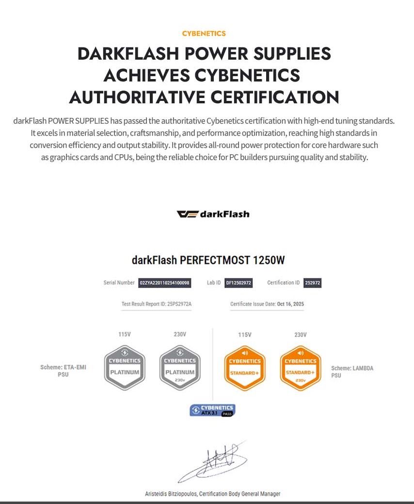 850W / 1050W / 1250W Bersertifikasi Cybenetics Platinum