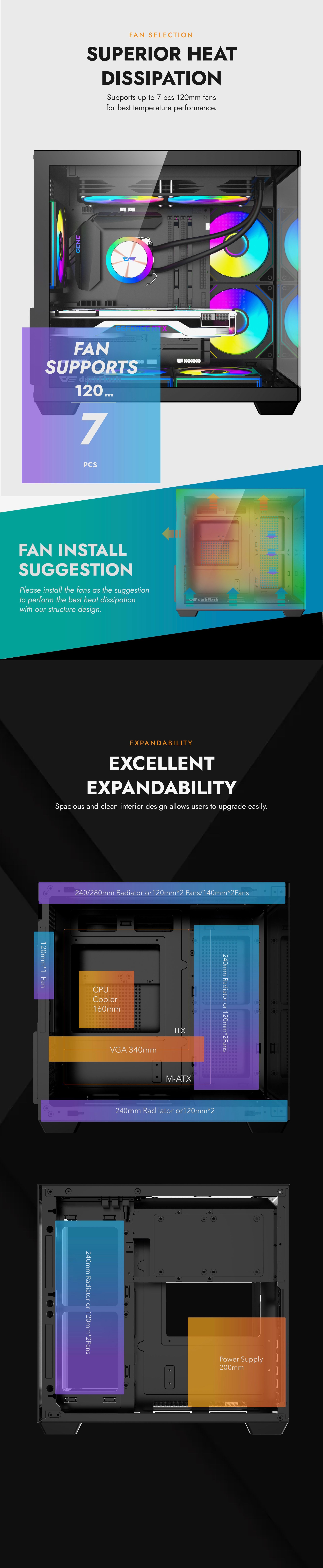 Optimized airflow layout supports up to 7 fans for superior cooling efficiency