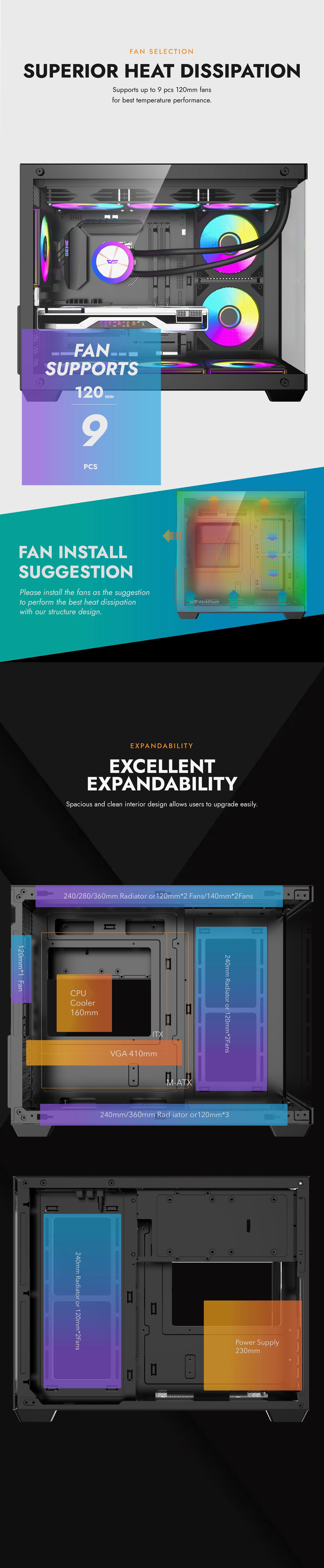 Optimized airflow layout supports up to 9 fans for superior cooling efficiency