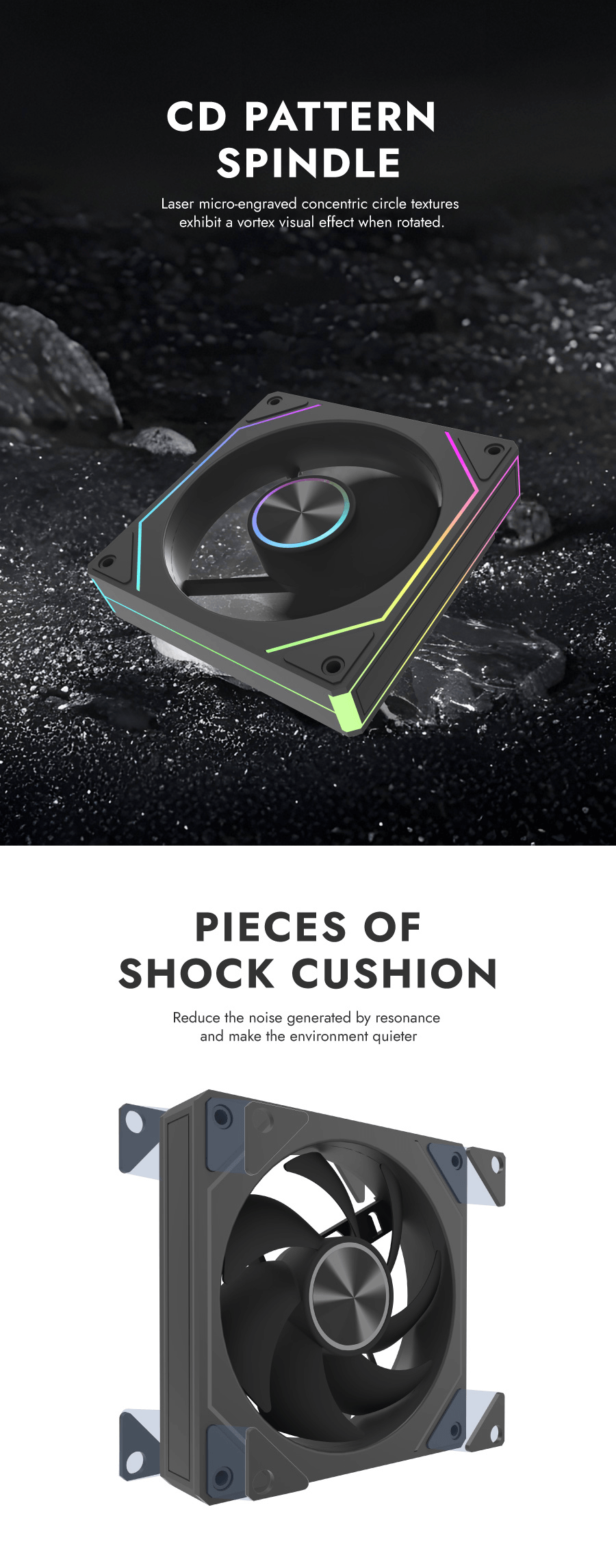 Shock-absorbing cushions reduce vibration noise