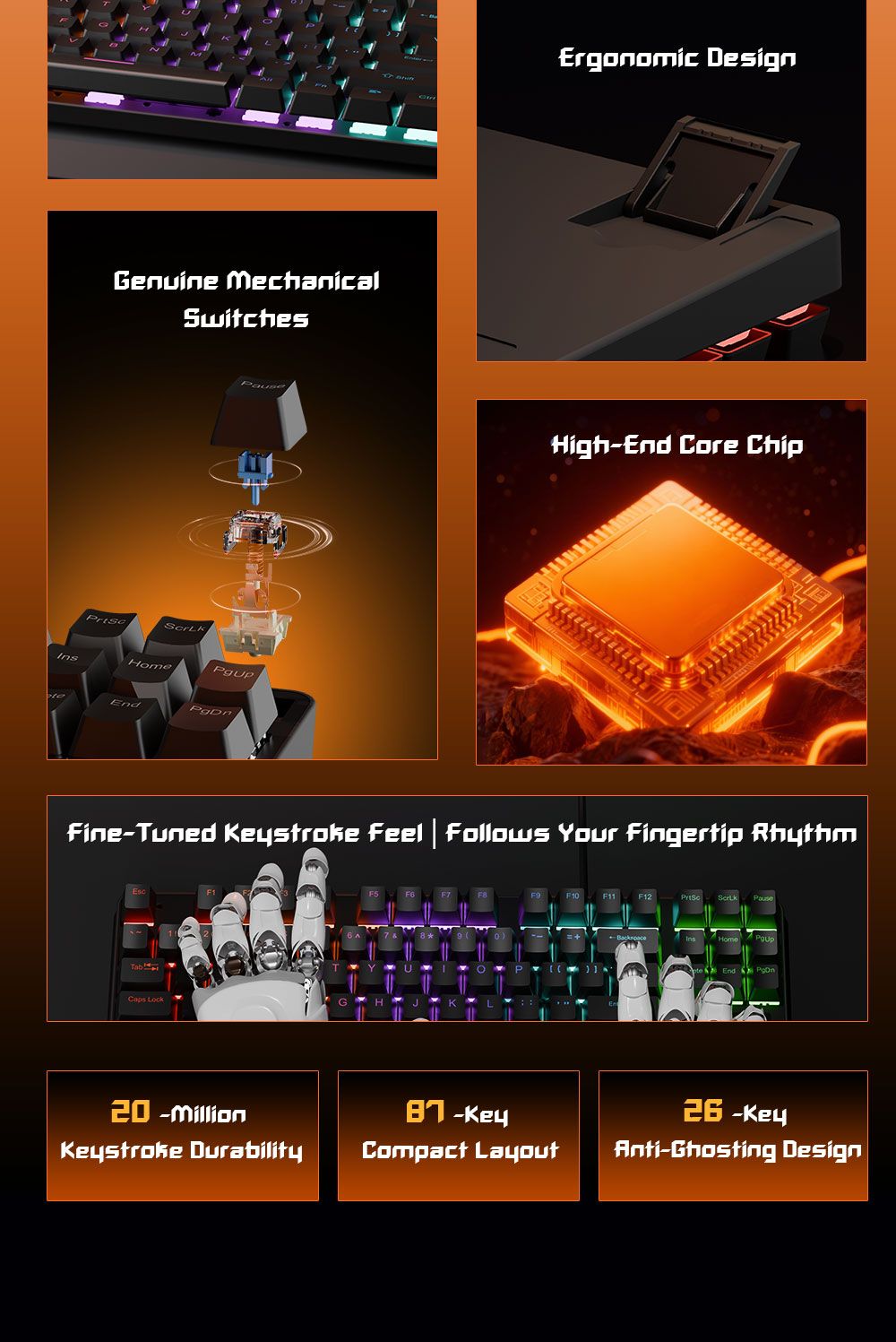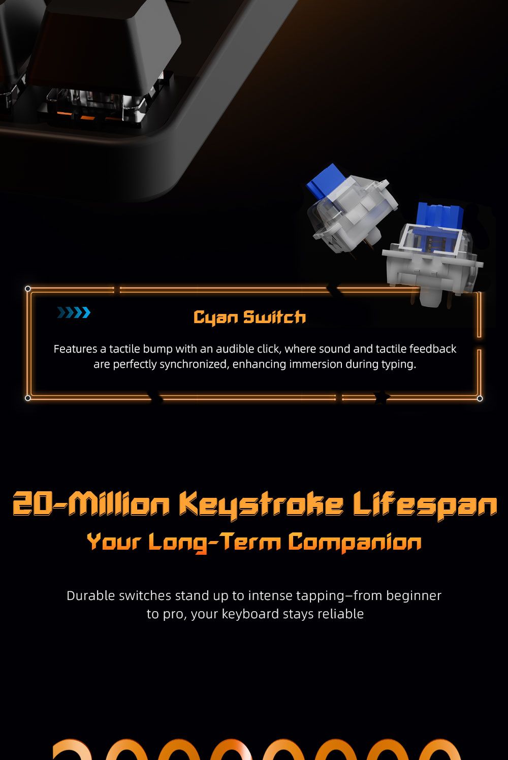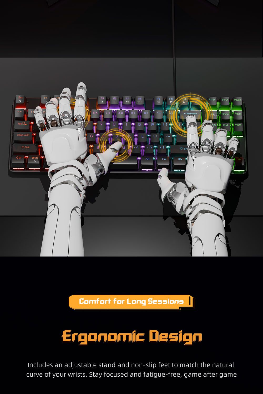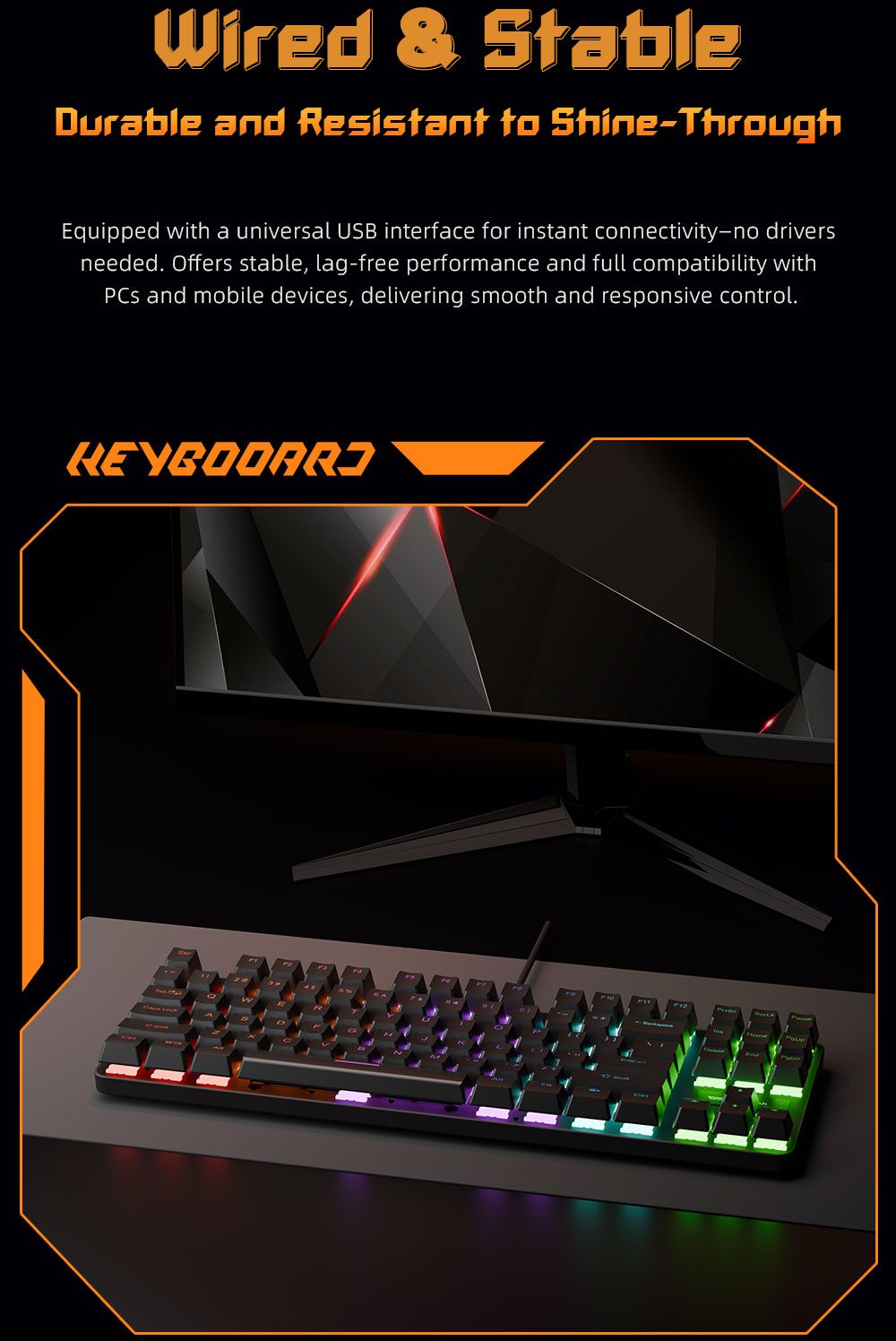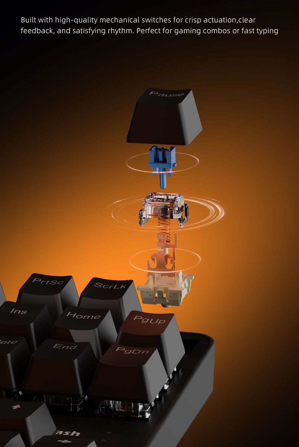 Double-shot ABS keycaps ensure lasting durability and clarity