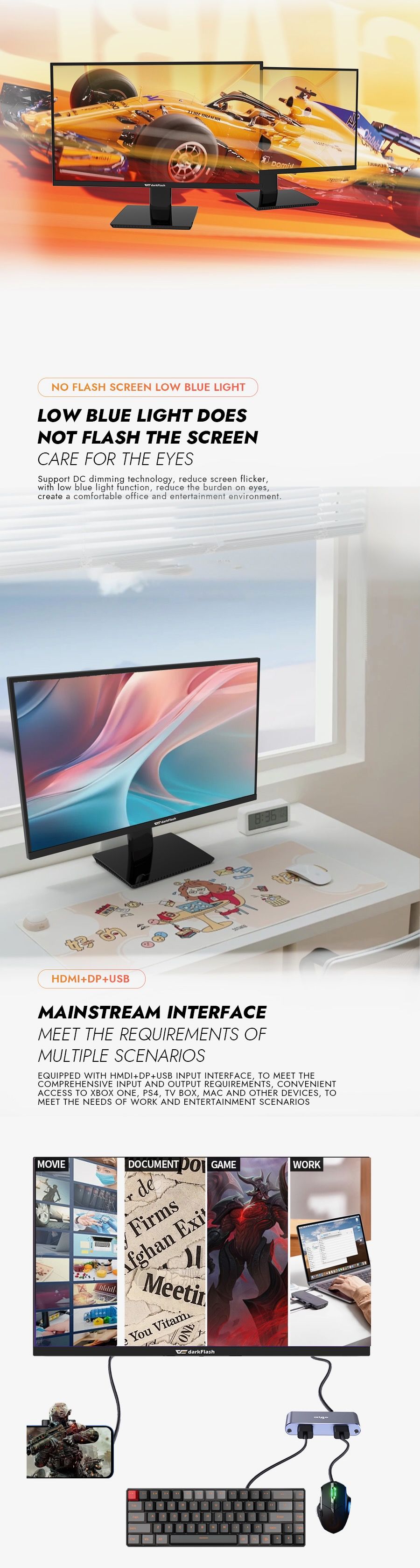 Reduces blue light emission with a dedicated display mode