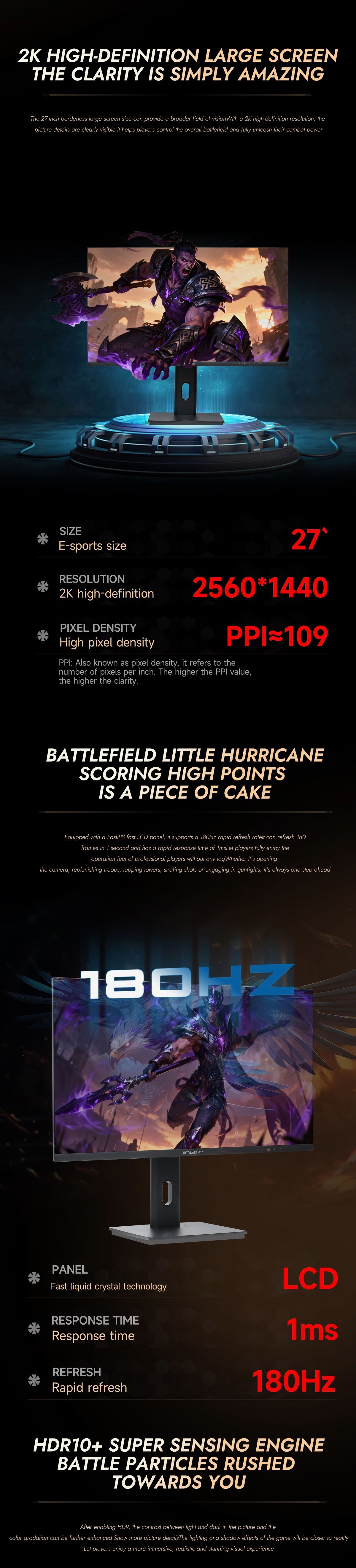 Experience clear visuals on a 27" 2K QHD high-definition display