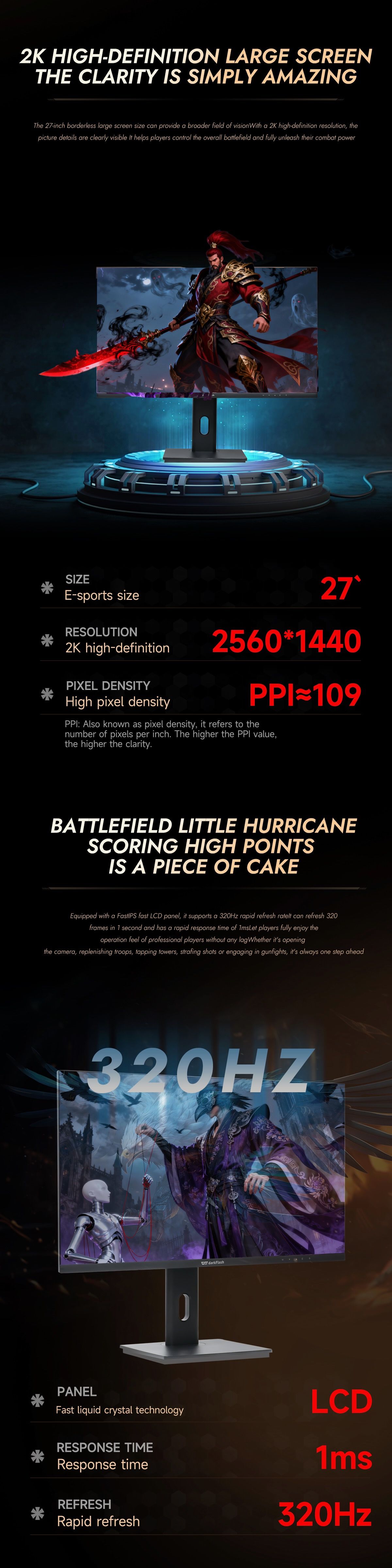 Ultra-rapid 320Hz refresh rate for fluid gameplay.