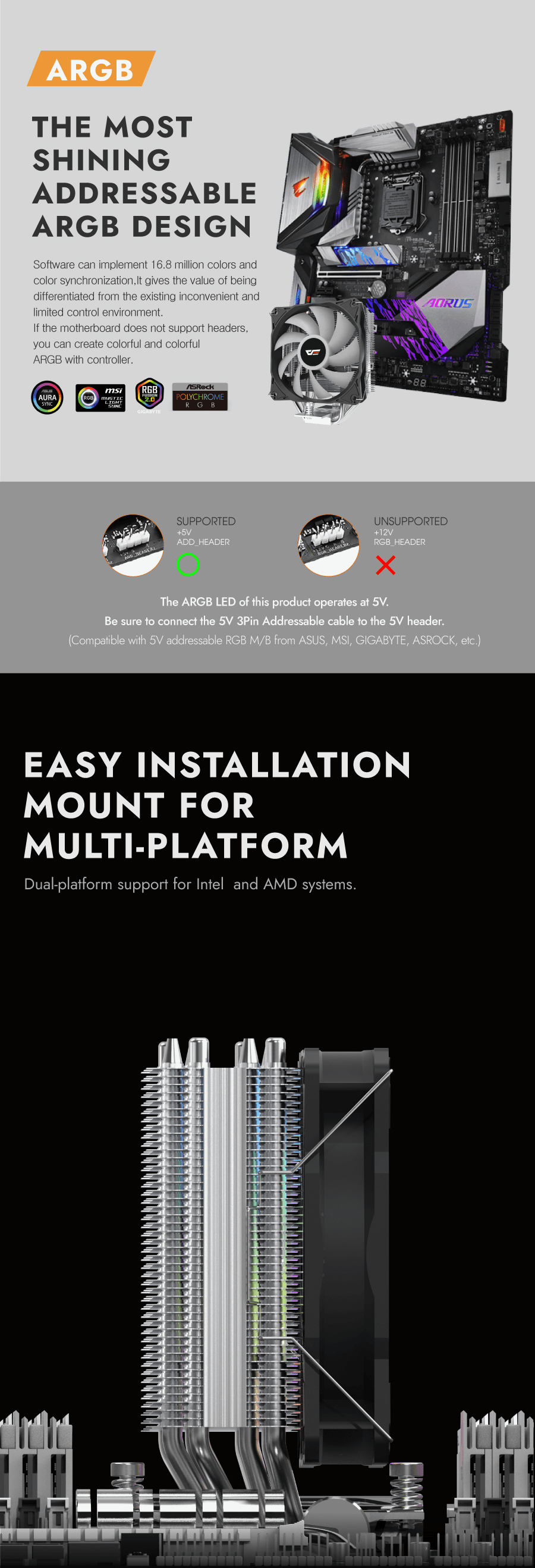 Features fascinating ARGB lighting effects to add premium texture to your build